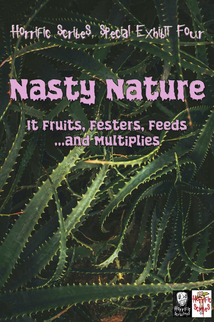 Stories submitted for our next Challenge (open as of April 1, 2026) should be “nature horror” (which encompasses but goes beyond our existing plant/fungal horror category). By “nature horror” we mean stories (or perhaps poems) that focus on horrific developments from the non-human part of the natural world. We want stories that emphasize provocative, scary, and strange aspects of the ugly, icky side of nature. Send us your creepy crawlies, weeds, worms, grubs, slugs, mosses, mushrooms, molds, lichens, and other natural things that throb and ooze and squirm. Show us forests cloaked in kudzu and corpses crusted in fungus. Send us pulsing maggots and beetles gnawing the gristle off of bones. Body horror is more than welcome, but we need unconventional, unfamiliar interactions between icky nature and the human body. Mixing nature with the weird, fantastic, or supernatural is fine, but the primary ick must be rooted in the natural world. And we’ve got one more twist for you: to qualify, your story’s primary horrific imagery MUST appear DURING THE DAY. Light it up. We want to see this ugliness clearly!
